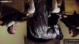 Gang-fuck for a warm brunette thirsty for sex and hot cum in a
