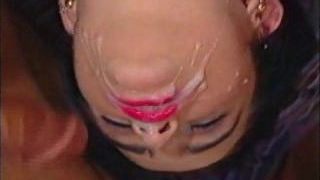 Yuuka Tsubasa in a huge gang-bang gulps cum from a glass