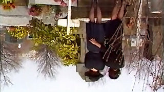 Horny and sexy German lesbos eating each others cunts on the balcony