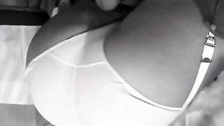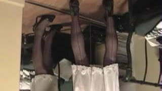 01:16lifts skirt to show slip and stockings