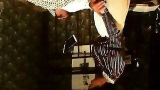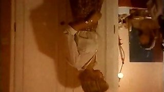 Housewife laid out sexy undergarments and outfits on the bed. She tries on panties, corsets, bras, socks, stocking, tights, peignoir. 1