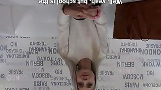 junge blondine freut sich auf das audition und faengt direkt an sich zu fingern