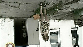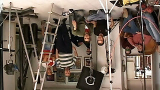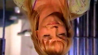 blonde bdsm cougar spuert die peitsche und handschellen auf der haut