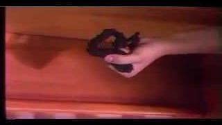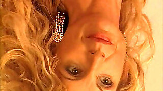 Cheeky blonde takes off retro lingerie pounds glass dildo toy