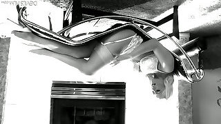 Housewife laid out sexy undergarments and outfits on the bed. She tries on panties, corsets, bras, socks, stocking, tights, peignoir. 1