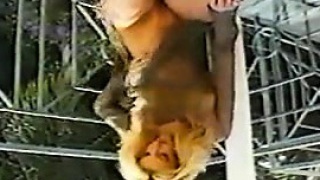 Blonde Rubbing hairy cunt in 70s scene